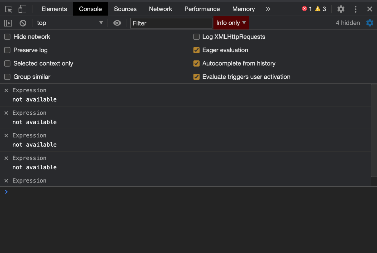 Console 패널의 기능