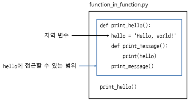 중첩 함수란 말그대로 함수안에 함수를 만드는 방법이다.