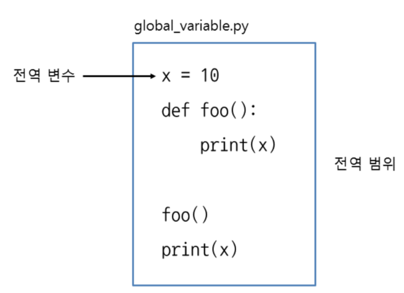 전역, 지역 변수 개념에서 함께 사용되는 범위이다