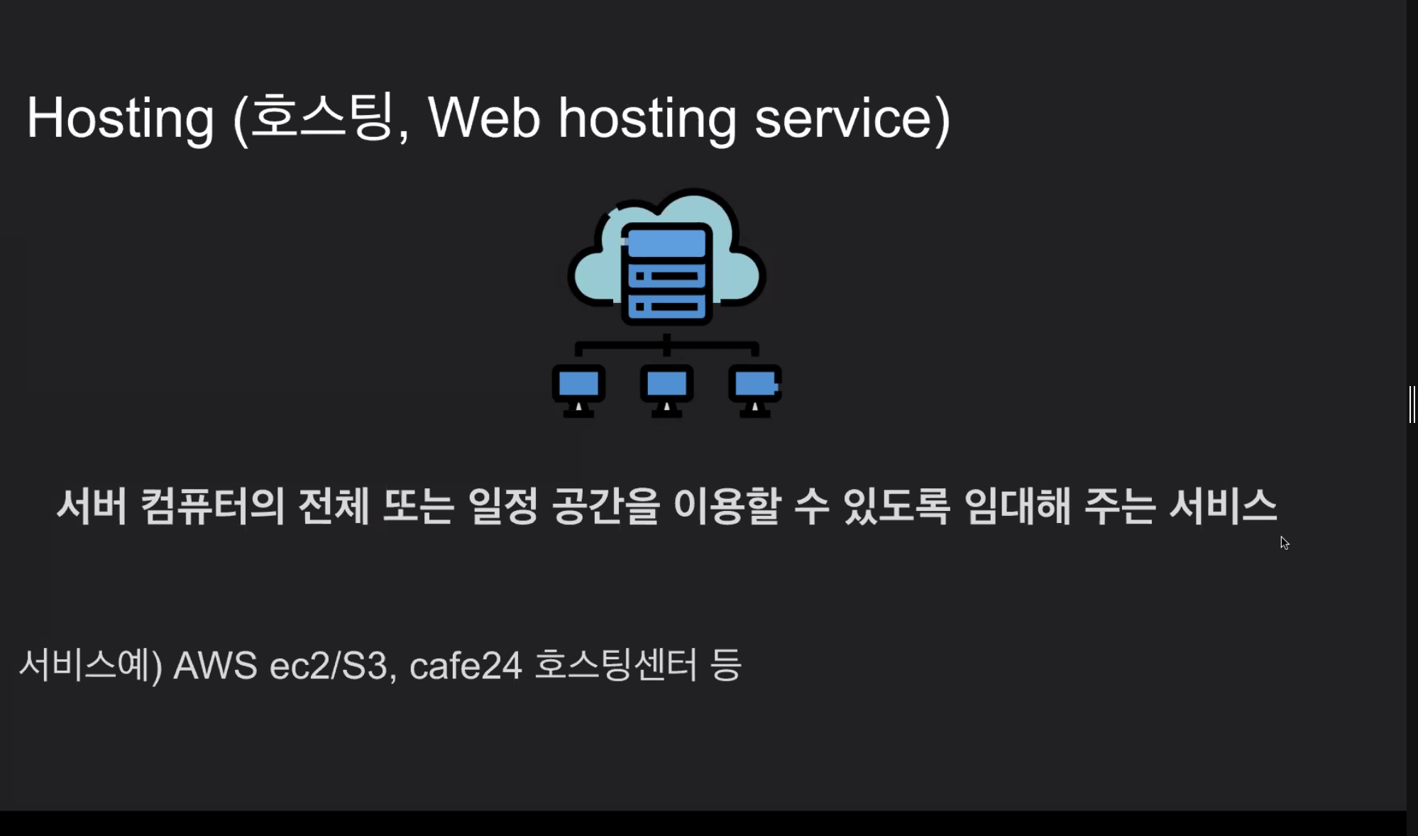 호스팅은 서버 컴퓨터의 전체 또는 일정 공간을 이용할 수 있는 서비스를 일컫는다.