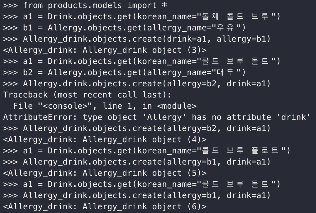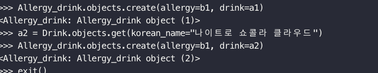 Allergy_drink.objects.create(allergy_name=a1, drink=b1)