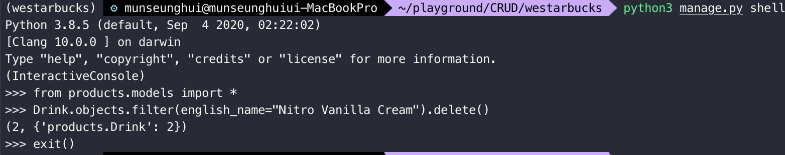 Drink.objects.filter(english_name="Nitro Vanilla Cream").delete()