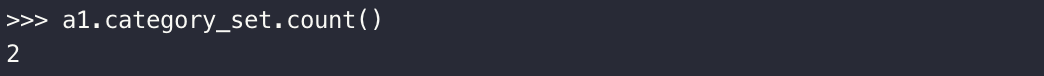 >>> a1 = Menu.objects.get(name="음료") >>> a1.category_set.count()