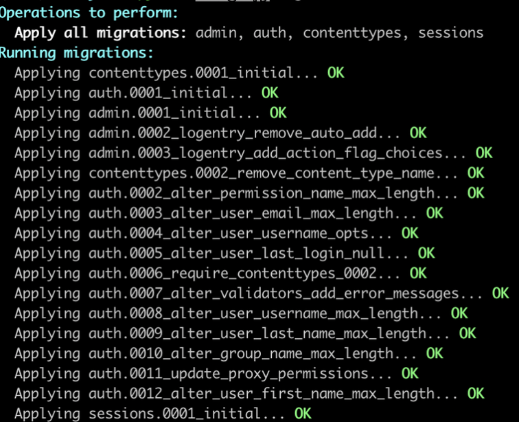 즉, 이 명령을 실행한 후라면, 필요한 데이터 베이스의 기본 구조가 만들어졌다고 이해하면 된다.