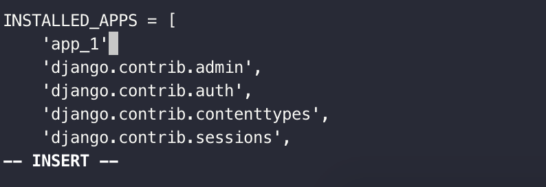 'app_1.apps.AppConfig' 을 입력하여 저장함으로써 이제 django가 polls 라는 앱이 포함되었다는 사실을 알게 된다.