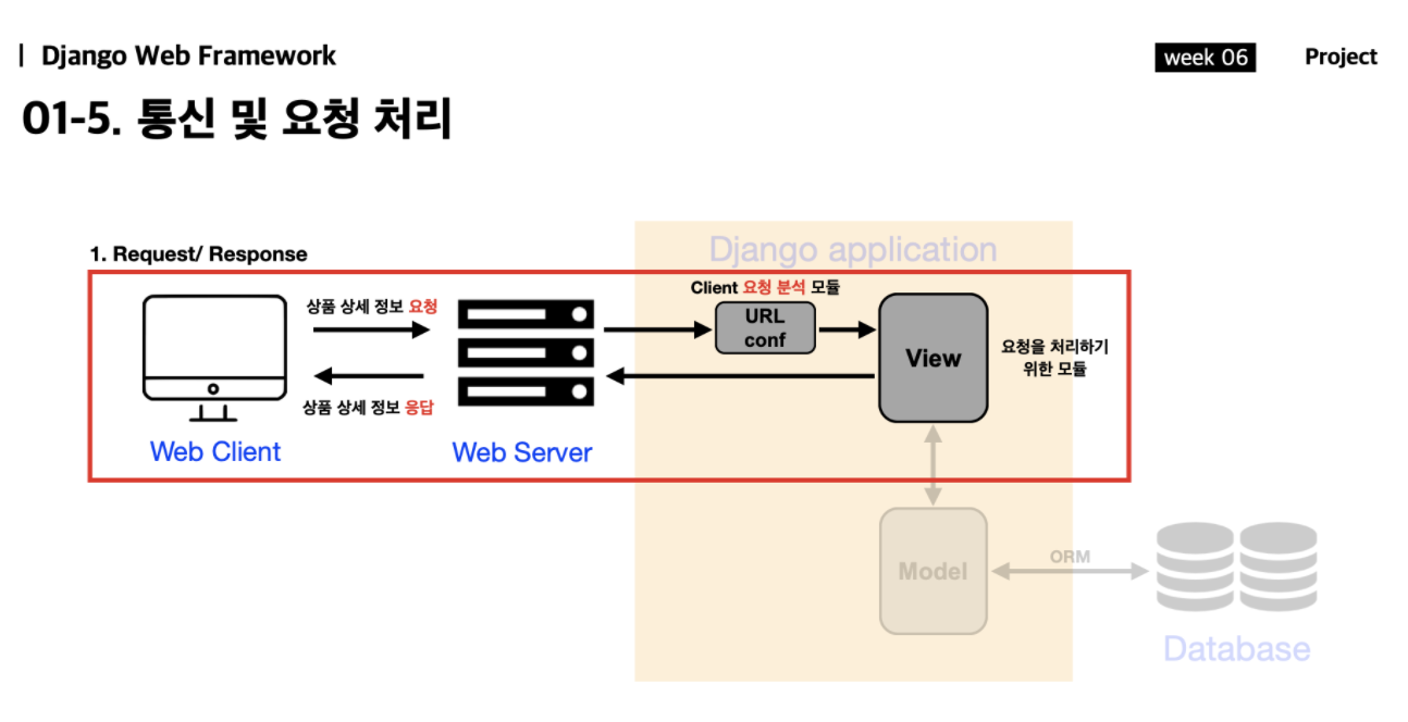 웹서버에서의 요청은 URLconf로 가서 장고가, 이 URL은 어떤 로직으로 수행해야되는지를 파악한 후,