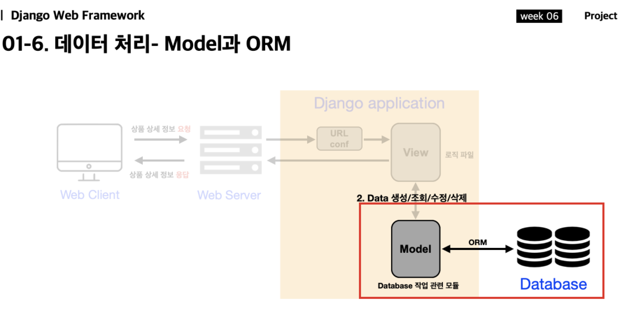 뷰는 models.py 라는 파일을 통해서 데이터베이스와 통신하게 된다.