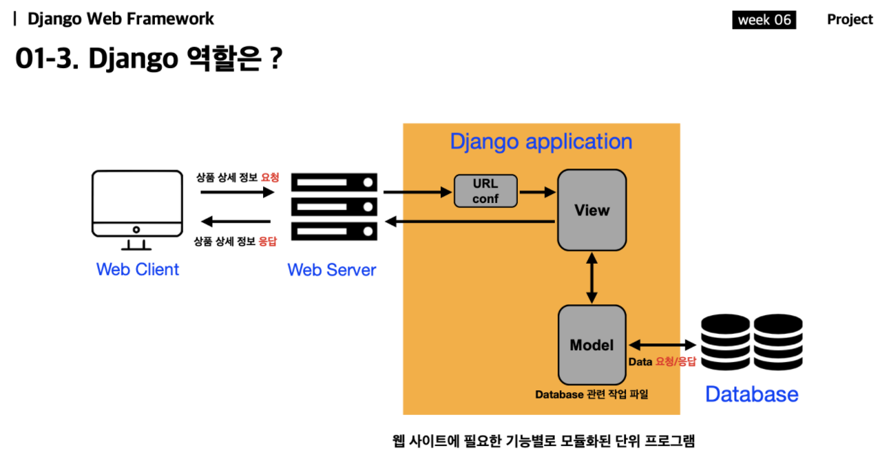 장고는 웹서버와 데이터베이스 사이에 있는 파이썬으로 짜여진 코드들의 집합으로 보면됨