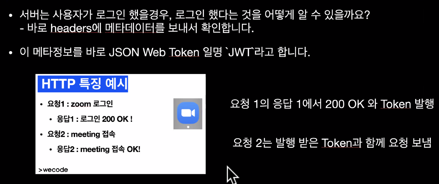 클라이언트가 서버에 요청을 보낼때만 필요한것 -> 토큰은 request 헤더안에 들어간다.