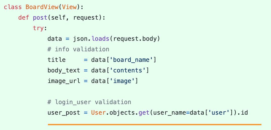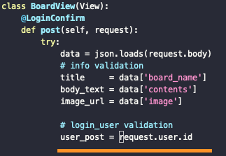 다음 게시물 등록 POST 함수로 넘어가서 POST함수에서는 토큰 검증 과정에서 생성된 테이블을 이용하여 접근을 해야 한다.