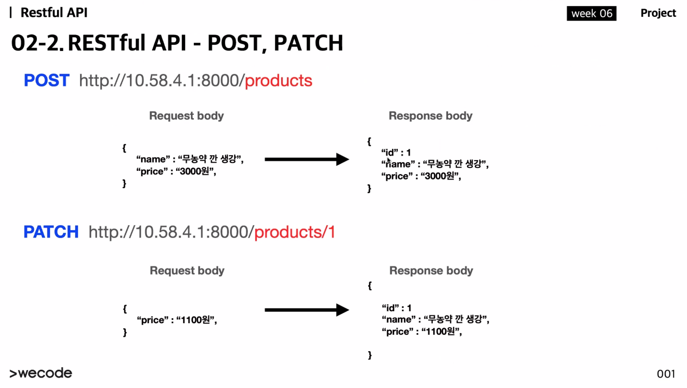 꼭 상품의 번호를 body가 아닌 Path parameter로 보내줘야한다. (프론트 역할)