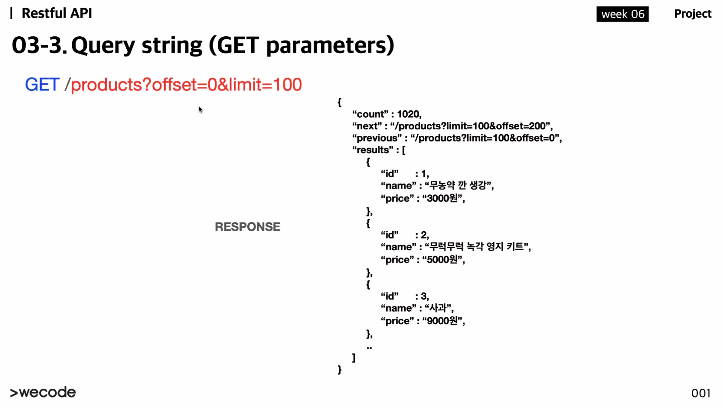 상품정보는 1 ~ 100번까지 (맨처음 상품부터 100개까지 데이터를 리턴해달라는 이야기