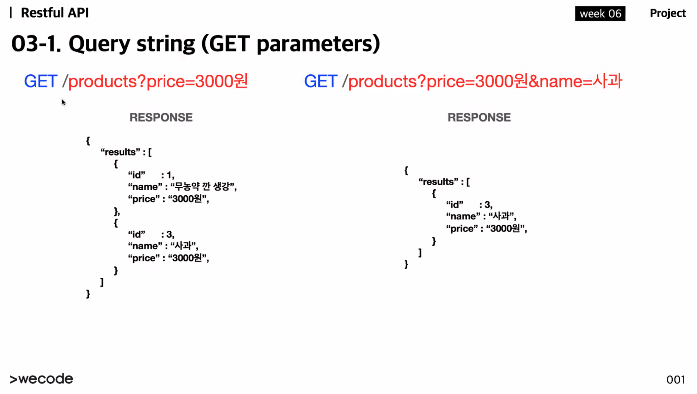 1. 모든 상품 중에 가격이 3000원인것을 모두 보내주는것 (쿼리 파라미터 = 쿼리 스트링)