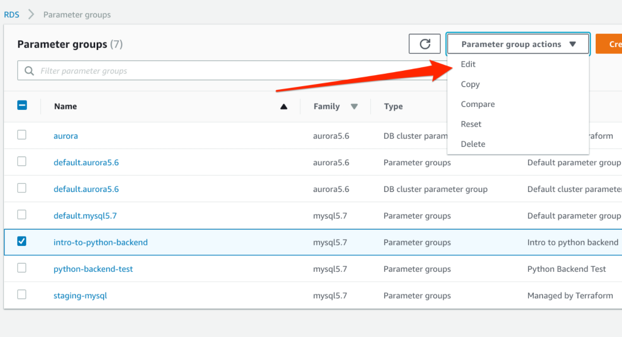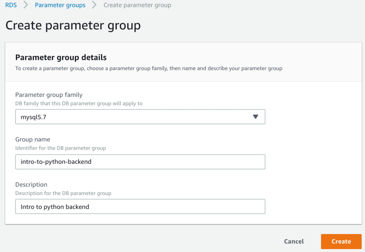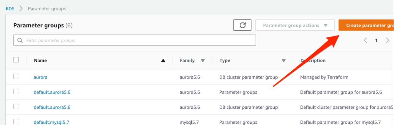 3. "Create parameter group" 옵션을 선택하자.