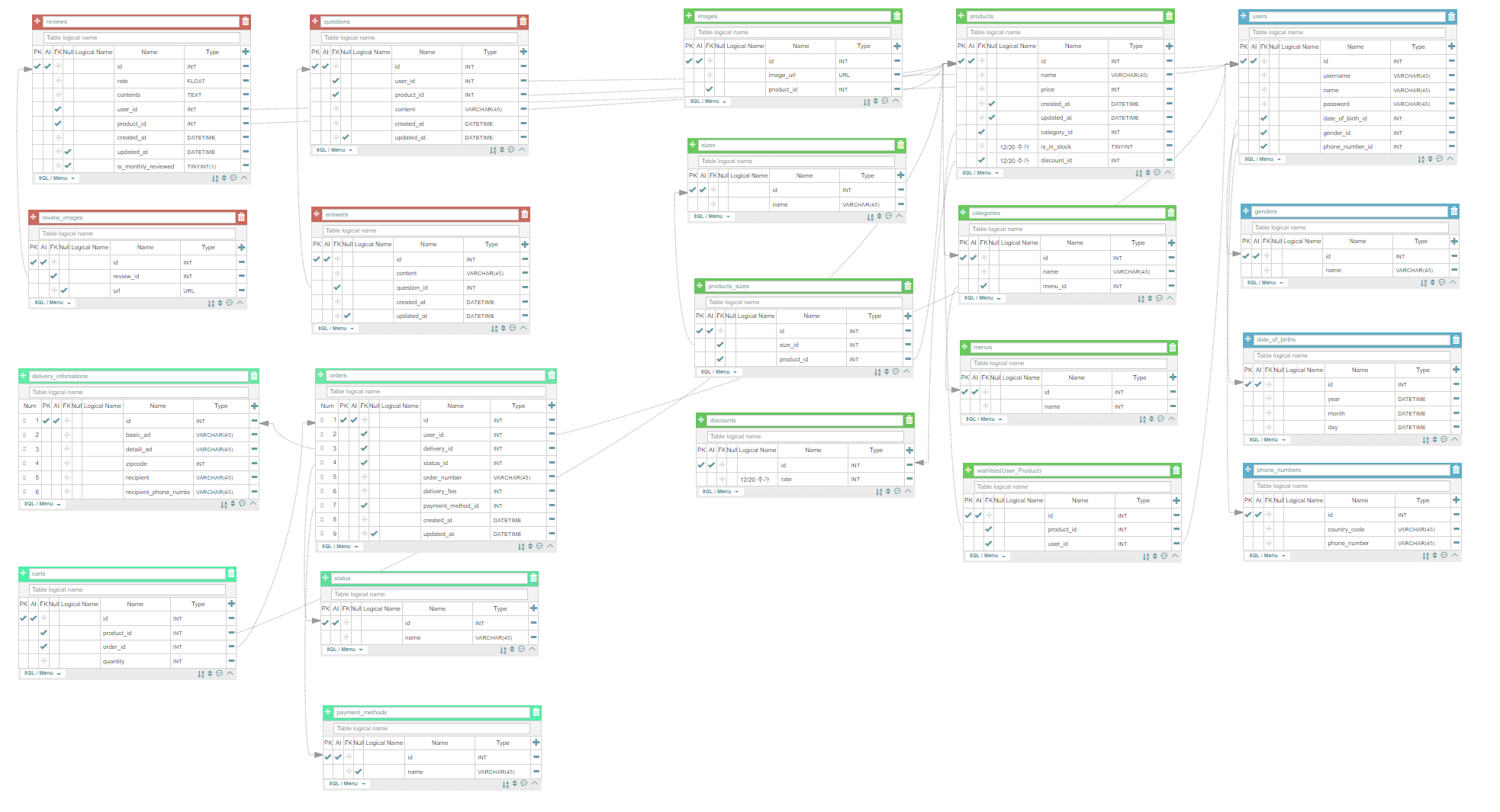 라인프렌즈 스토어 AqueryTool 을 이용한 ERD 작성 및 Modeling