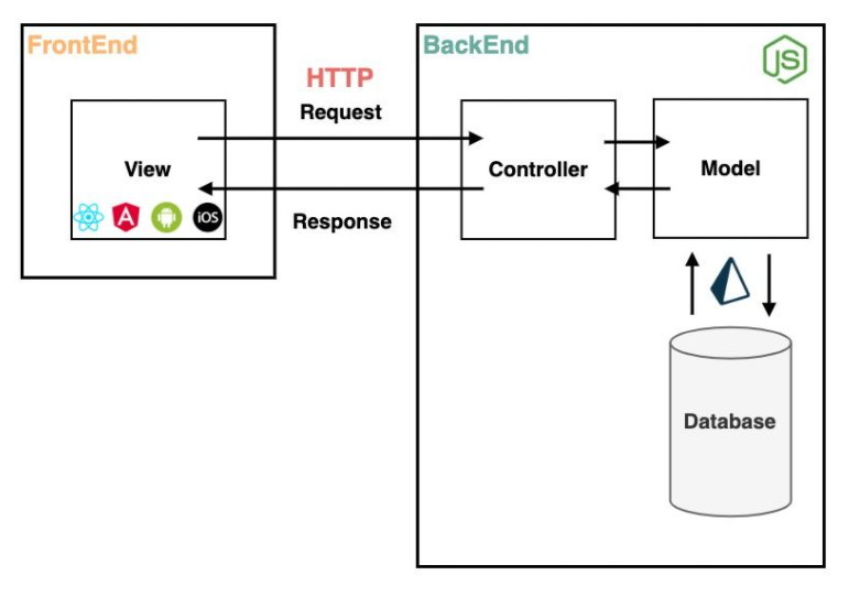 SPA(Single Page Application) 과 Mobile App 의 빠른 성장으로 FrontEnd 개발자의 역할이 커짐에 따라서 서비스를 위한 소프트웨어는 FrontEnd 와 BackEnd 로 나뉘게 되었습니다. 본래 MVC는 서버 사이드에서 한번에 다뤄지던 구조 입니다. 예를들어서, Django 의 템플릿 기능이나 Express 에도 ejs 를 사용하면 View 를 구현할 수 있었다.