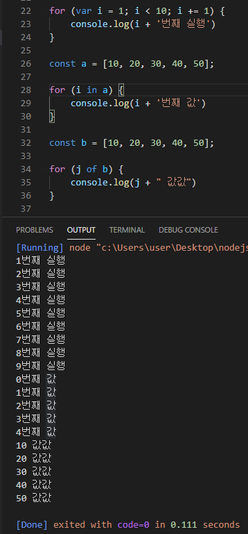 console.log(i + '번째 실행')