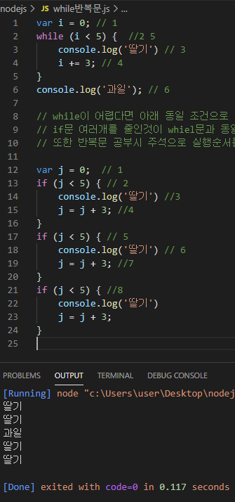 // 또한 반복문 공부시 주석으로 실행순서를 달면서 공부하면 훨씬 효율이 좋다.