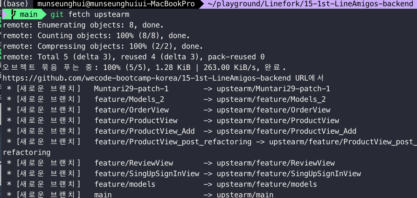 2. upstream repo 로부터 최신 업데이트를 가져올 차례이다.