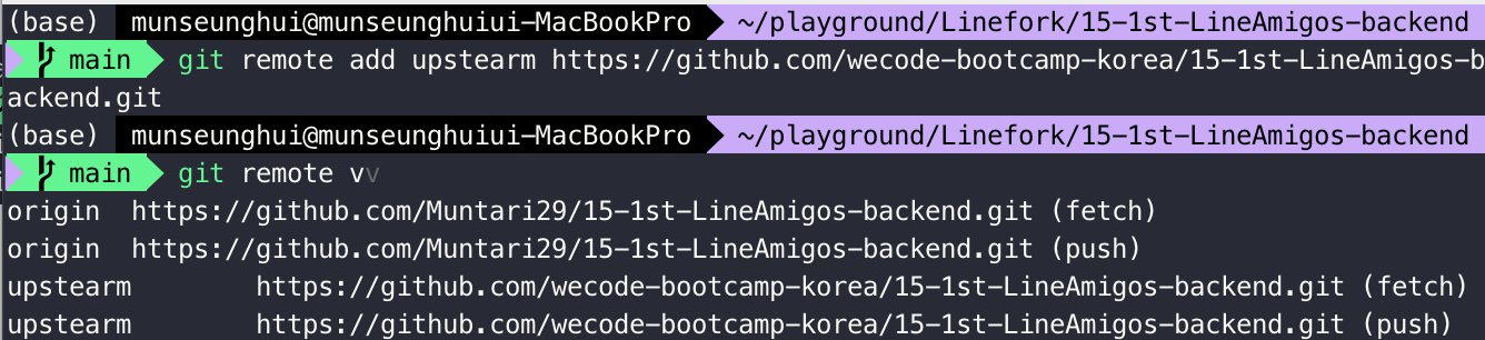 git remote -v아래의 Muntari29 이 현재 포크해온 Repo이다.