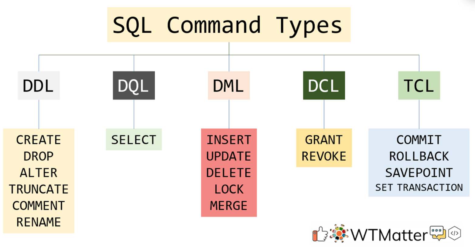 https://wtmatter.com/sql-command-types-ddl-dql-dml-dcl-tcl/ 참고 : codermun-log.tistory.com/209