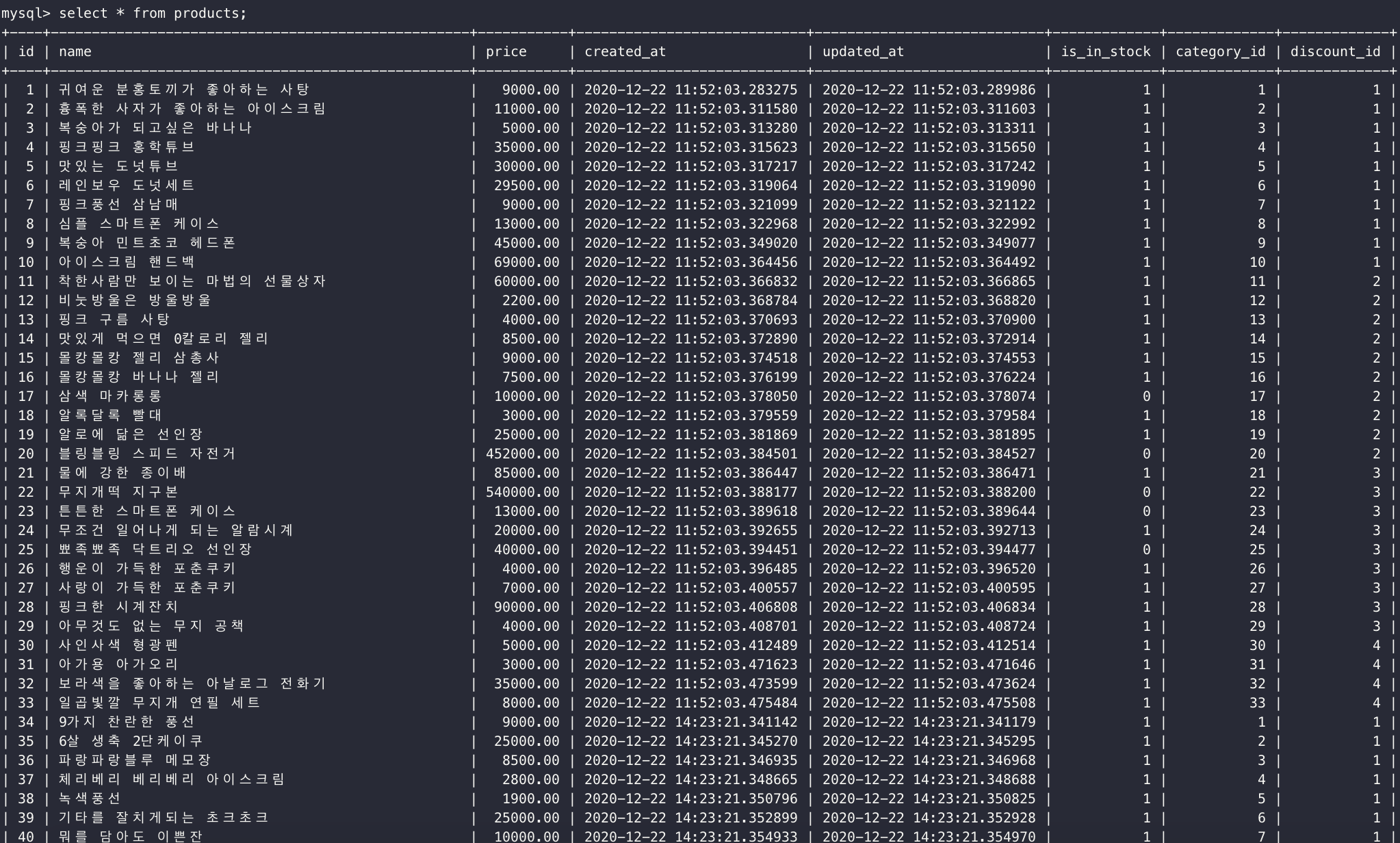 수많은 제품 중에서 WHERE과 논리연산자를 함께 사용해보도록 하자.