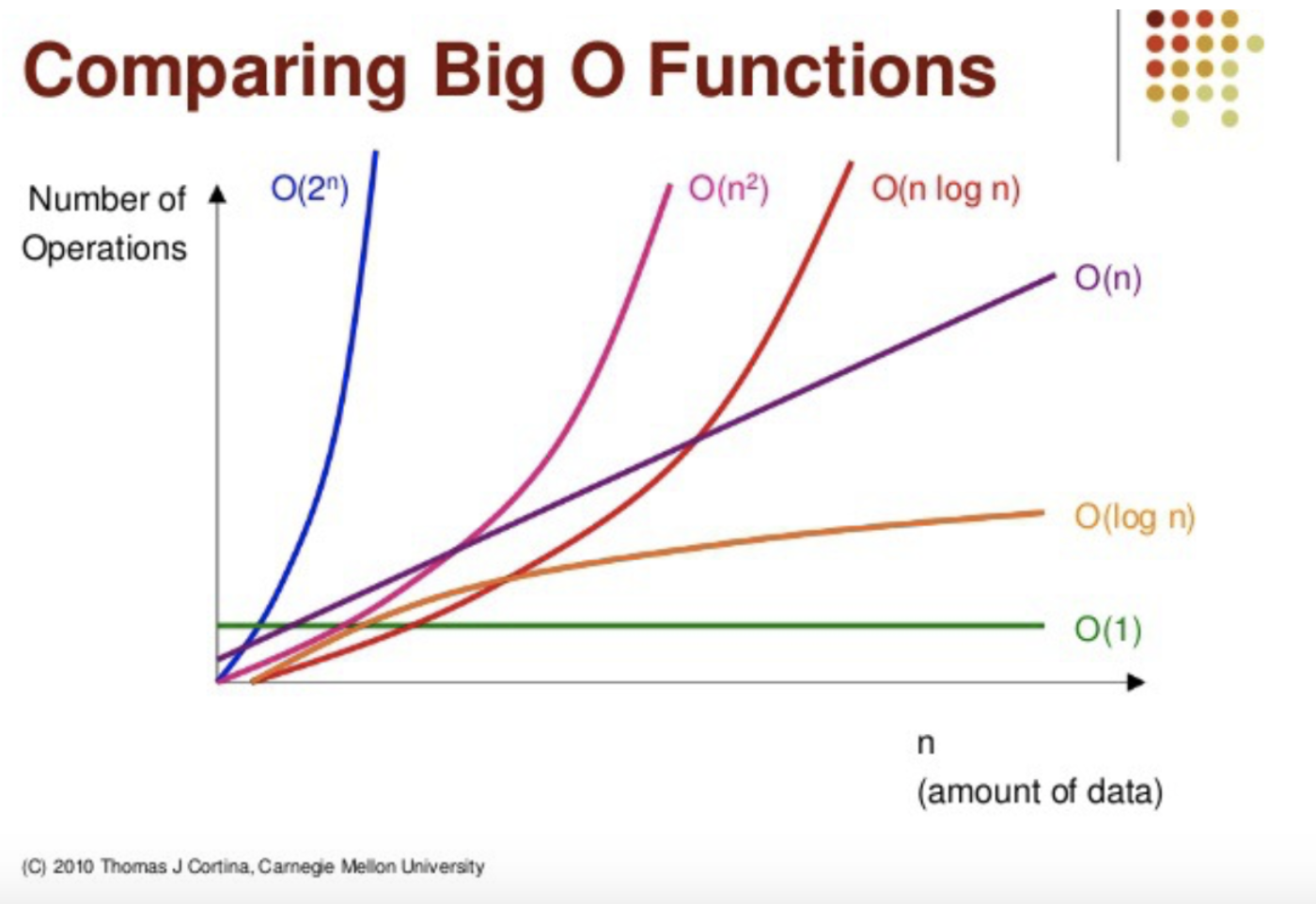 빅오는 점근적 실행 시간을 표기할때 가장 널리 쓰이는 수학적 표기 방법이다. 여기서 점근적 실행 시간이란 간단하게 n이라는 입력값이 무한대로 커질떄의 실행 시간의 추이를 의미한다. 따라서 충분히 큰 입력값에서의 알고리즘의 효율성에 따라 수행 시간이 크게 차이가 날 수 있다.