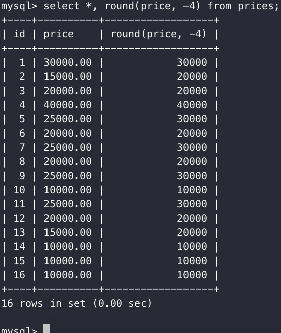 select *, price * 100 as amount from prices where price * 100 > 3000000;