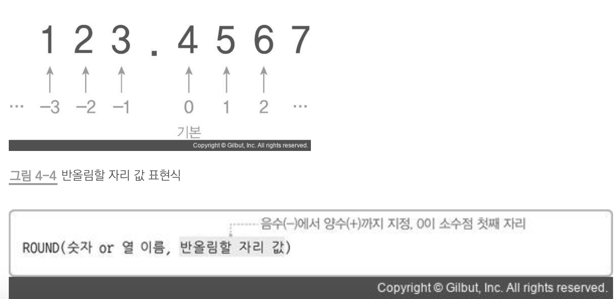 MOD(나뉘어질 수, 나눌 수) MOD(분자, 분모)10%3 => 1 MOD(10,3) => 1실제로 연산자와 함수가 같다는 의미는 아니지만 SQL에서는 같다고 생각해도 무방할 것이다.