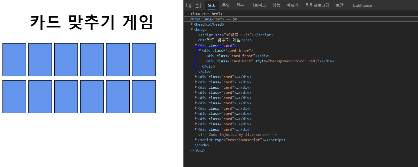 // 위의 코드들로 이용해 카드 맞추기에 필요한 '카드'를 하나 만들었다.