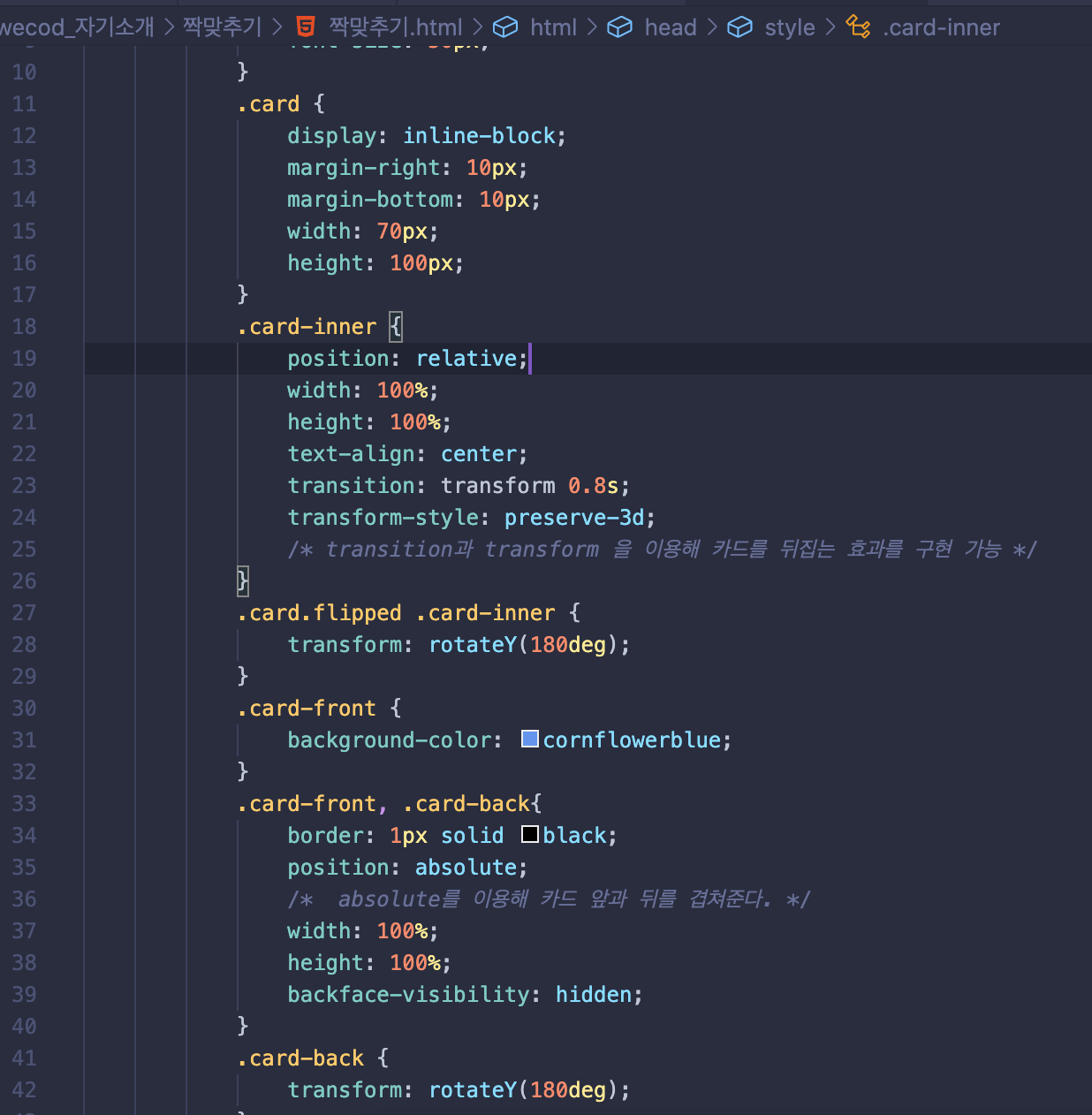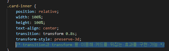 // 즉 div class 중에서 card (부모) -> card-inner(자식) -> card-front, back(자식) 하위 개념으로 들어간다.