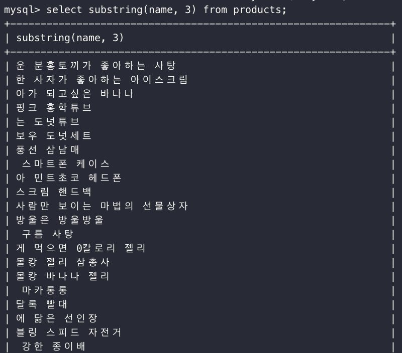문자열 일부분을 계산하여 반환해주는 함수이다.