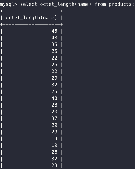MySQL에서 문자열의 길이를 가져올 때, 사용하는 것이 OCTEF_LENGTH함수입니다.