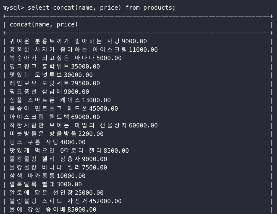 이때 문자열형 데이터 뿐만이 아닌 수치형 데이터와의도 결합할 수 있다. 다만 결합한 결과는 문자열형 데이터가 된다는것만 기억하자