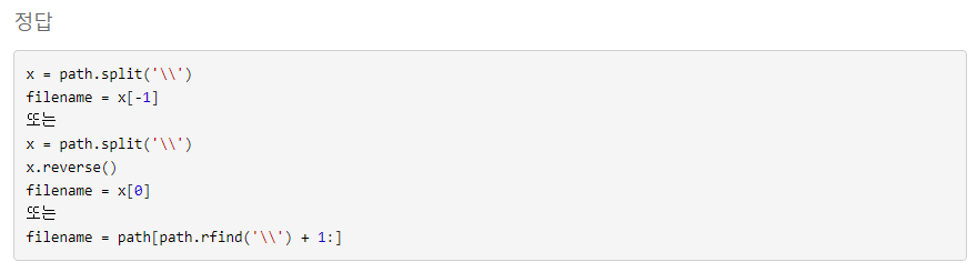 다음 소스 코드를 완성하여 파일 경로에서 파일명만 출력되게 만드세요. 단, 경로에서 폴더의 깊이가 달라지더라도 파일명만 출력할 수 있어야 합니다.