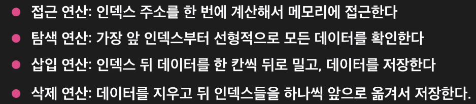 데이터를 메모리에 순서대로 그리고 연속적으로 저장한다.