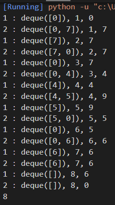 pop() or popleft()의 경우 요소를 삭제하며 삭제하는 값을 반환하기 때문에 이를 이용해 코드를 변경하였다.