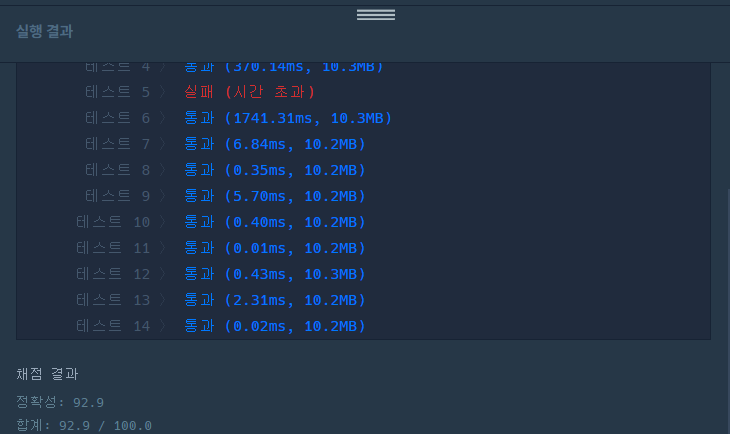따라서 O(n) + O(2n) ==> 약 O(n^2)으로 시간 초과가 나지 않을까 추측해본다.