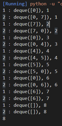 pop() or popleft()의 경우 요소를 삭제하며 삭제하는 값을 반환하기 때문에 이를 이용해 코드를 변경하였다.