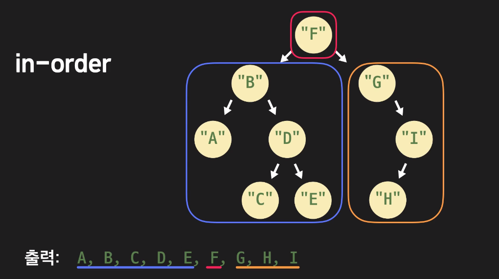 (트리를 순회하는 과정에서 선형 자료구조와 같이 데이터를 출력할 수 도 있다.)