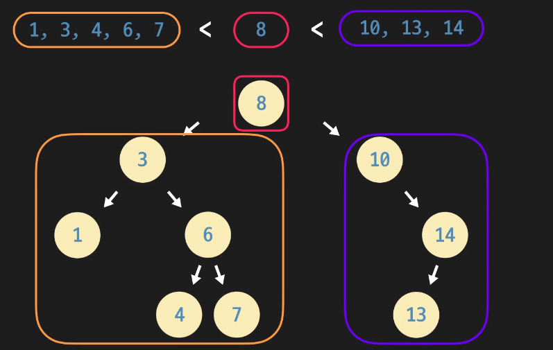 2. 특정 노드를 기준으로, 특정 노드의 오른쪽 부분 트리에 있는 모든 노드는 특정 노드의 데이터보다 커야 한다.