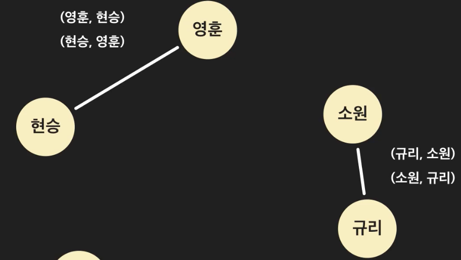 영훈과 현승 사이를 잇는 에지는 현승, 영훈 에지 or 영훈, 현승 에지라고 부른다.