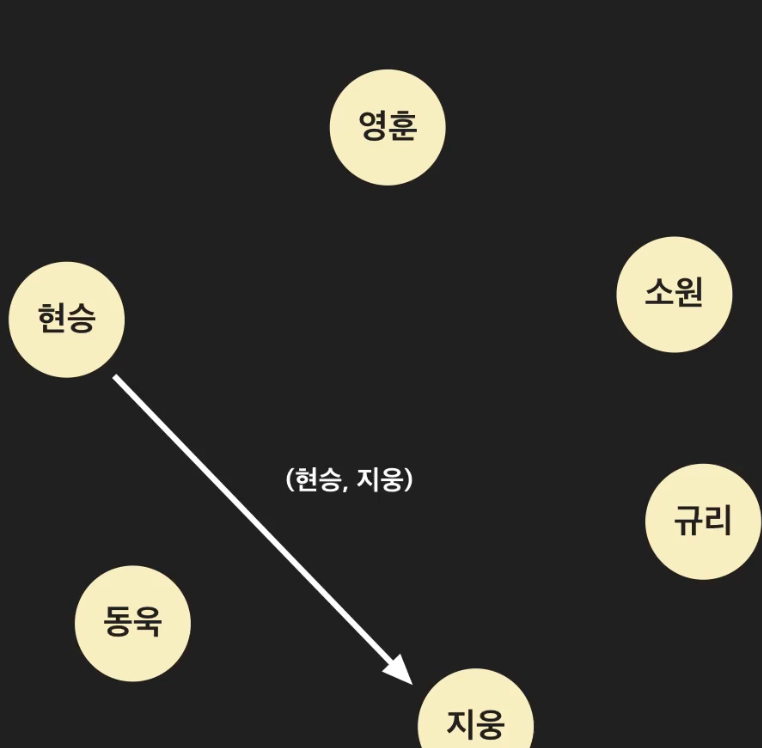 영훈과 현승 사이를 잇는 에지는 현승, 영훈 에지 or 영훈, 현승 에지라고 부른다.