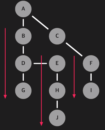 하나의 노드에서 시작해서 최대한 깊이 그리고 멀리 가는 탐색하는 방법을 깊이 우선 탐색 알고리즘이라 부른다.