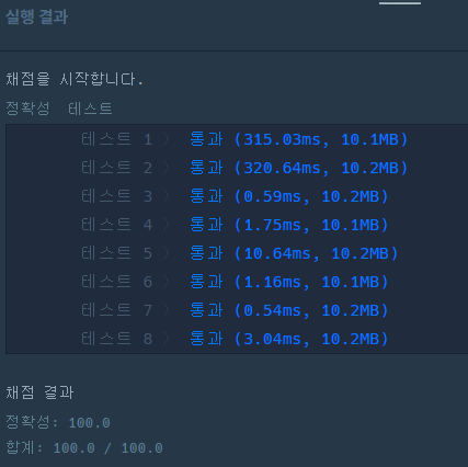 사실 굉장히 효율이 안좋다고 생각하는데 통과가 주어진 문제를 DFS로 풀었을때 런타임에러가 발생하지 않도록 N값을 낮춘게 아닐까 생각한다.