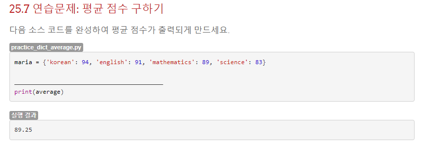 먼저 평균 점수 중에서 딕셔너리의 값만 뽑아와 합산 후 나누어 주면 되는 문제이다