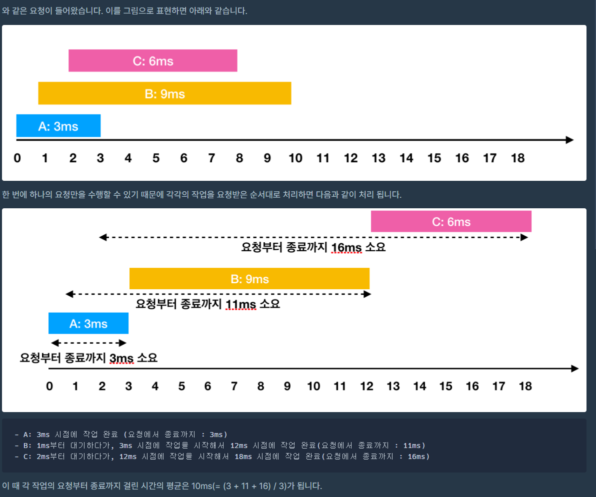 - 0ms 시점에 3ms 걸리는 작업 요청이 들어옵니다.