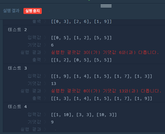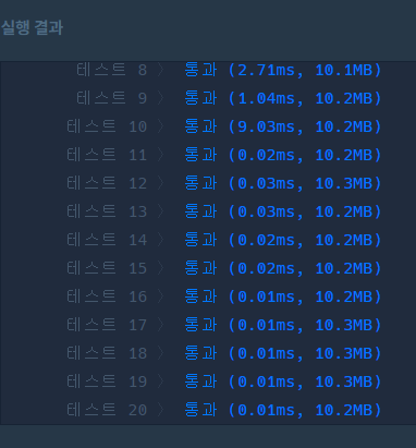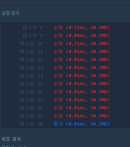 딱 기본 테스트 케이스와 20번을 제외한 모든 테스트에서 실패한다.