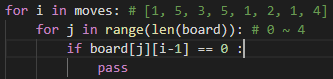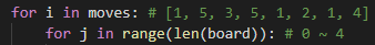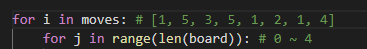 i = board를 j = moves를 사용해도 답을 구할 수 있을 것 같다.