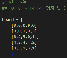 board 는 [0][0] ~~ [4][4]까지의 인덱스번호를 가지고 있다 (5 x 5 기준)